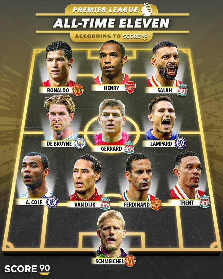 评英超历史最佳阵:C罗+萨拉赫+亨利组三叉戟 阿诺德在列